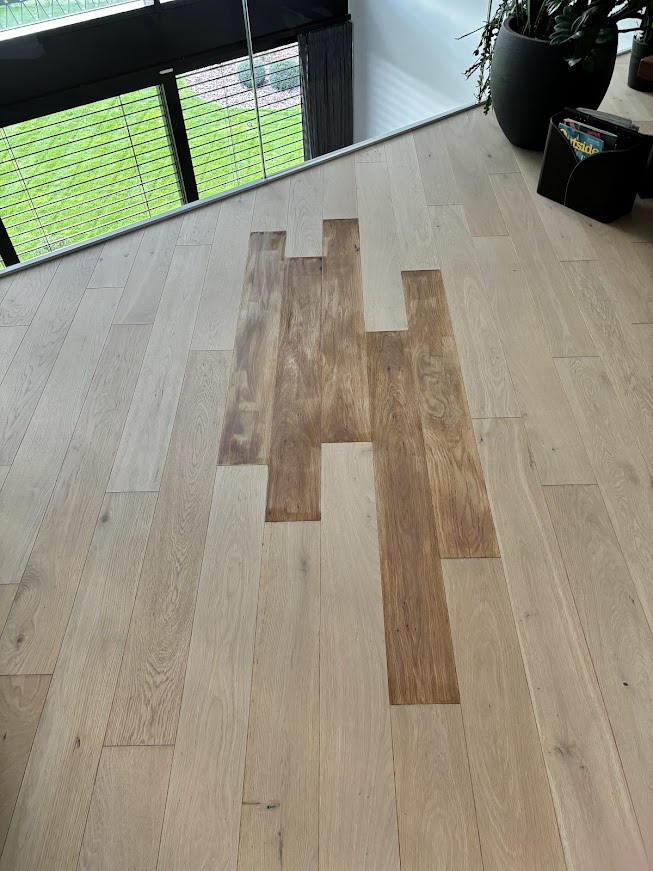 On isole la zone avec des outils précis, on découpe et remplace uniquement la lame défectueuse, puis on finit par un ponçage et vitrification localisés pour un rendu parfait.